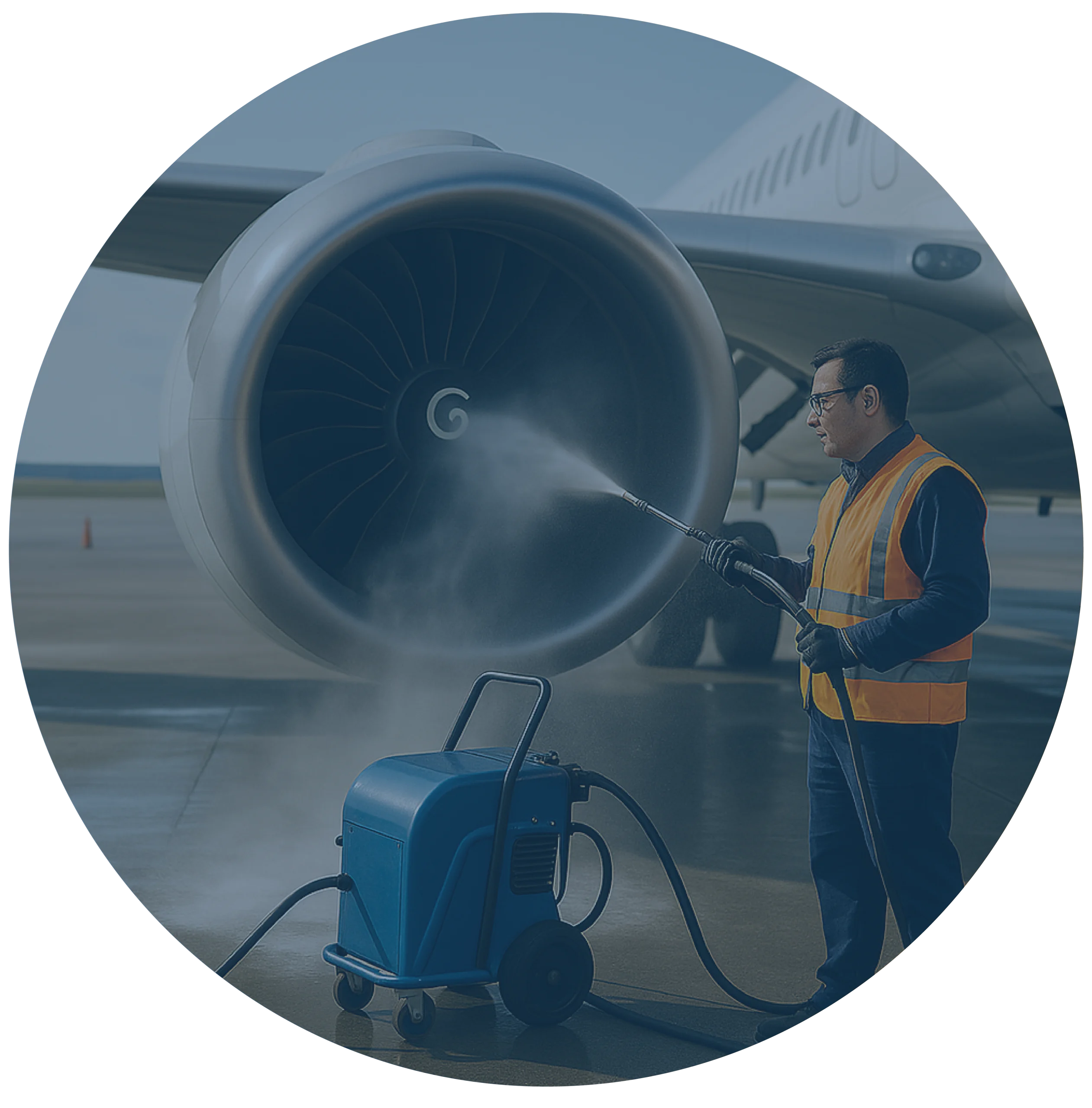 Contamos con un sistema de lavado seguro, ecológico, de fácil instalación y totalmente autónomo, su fácil movilidad permite un traslado rápido al lugar donde se encuentra la aeronave.